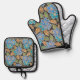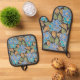 Elegante Blume Blue Periwinkle Floral Classic Ofenhandschuh & Topflappen-Set