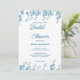 Feiern Sie die zukünftige Braut mit dieser eleganten Blumen Brautdusche! Dieses Design mit zarten blauen Blumen auf einem weichen, weißen Hintergrund strahlt Eleganz und Charme aus. Der stilvolle Script-Schriftart hebt die wichtigsten Details hervor und macht ihn zu einer idealen Wahl für ein klassisches und zeitloses Brautparty. Diese Einladung ist vollständig an Ihre Veranstaltungsdetails angepasst und Set den perfekten Ton für eine unvergessliche Ansammlung.