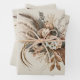 Papiertücher mit einem hübschen Blumenstrauß, umgeben von bräunlichen Bronzegräsern und Blattwerk mit Federakzenten. Ein hellbrauner, cremefarbener Hintergrund mit einem schwachen Damast-Muster.