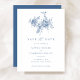Elegante Blumen Ornament Navy Blau Save the Date Einladung