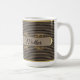 Personalisieren und geben Sie Ihrer Mutter oder Großmutter diese "Eine von einer Art" elegante blaue Blume und rosa Schmetterling Mutter Tag Tasse! Die Blume sind schön hell und dunkelblau, mit einer rosa und schwarzen Schmetterlingsumgebung von einer Extravaganten goldfarbenen Dekorationsgrenze auf einem Tan- und Black Strip Hintergrund! Originelle Kunst von Kerry Miller.
