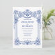 Elegante blumenbarocke blaue Kolumne Einladung zur Hochzeit.