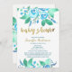 Elegante Blumenblauer Rose Wasserfarben Babydusche Einladung