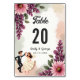 Diese elegante, Aquarellblütenhochzeit-Tischnummer eignet sich ideal für eine moderne Hochzeit. Das romantische Design besticht durch einen eleganten, floralen Aquarellrahmen mit einer Braut- und Bräutigrade und einer schwarzen Kalligraphie auf weißem Hintergrund.