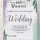 Diese elegante Wasserfarbenhochzeit lädt zu einer modernen Hochzeit ein. Das romantische Design besticht durch einen eleganten, floralen Aquarellrahmen mit einer Braut- und Bräutigrade und einer schwarzen Kalligraphie auf weißem Hintergrund.