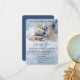 Elegante, elegante und raffinierte blaue Blumen auf einem Stapel blauer antiker Bücher Design "Unser nächstes Kapitel beginnt" "Danke" Design.