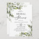 Diese elegante Brautdusche bietet eine Aquarell-Illustration eleganter grüner Blätter, staubige, weiße blühende Blume und eine trendige handgeschriebene Textdusche. Passen Sie diese elegante Einladung mit Ihrem Veranstaltungstyp an und machen Sie sie perfekt für Brautparty, Babydusche.