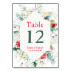 Dieses wunderschöne und elegante Hochzeitszeichen mit Aquarellfarben-Blume, Laub und Beeren ist die Tischnummer. Der Text kombiniert handgeschriebene Skript- und Serif-Schriftart für ein stilvolles und modernes Aussehen. Dies ist ideal für eine Weihnachts- oder Winterhochzeit.