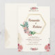 Elegante Blumenhexagon Gold Frame Wedding Einladung