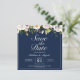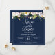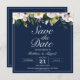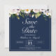 Elegante Hochzeit Save the Date mit weißen Blume und marineblau. Personalisieren Sie es mit einem QR-Code auf der Rückseite, dass Ihre Gäste scannen können, um einfach Ihre Hochzeitswebsite zu öffnen.