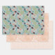 Elegante Blumenmuster Blau Pfirsichgrüne Blume Geschenkpapier Set