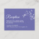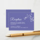 Diese elegante und minimalistische Hochzeitsempfangskarte besticht durch eine hübsche, zarte, weiße Orchideenreihe, die oben in einem klassischen, periwinkelblauen Hintergrund das Design zeichne. Bearbeiten Sie die Vorlagenfelder einfach, um die Informationen Ihres Empfangs in einem modernen und einfachen weißen Schriftart hinzuzufügen. Für weitere Personalisierungen oder Sonderanfertigungen, kontaktieren Sie mich bitte unter acherryonthecake@hotmail.com (bitte 1-2 Arbeitstage). Diese Empfang-Umschließungskarte ist Teil der Kollektion "Delikate Orchideen - Periwinkle Lila Hochzeitssuite", die mit vielen Gegenständen für eine einzigartige Hochzeitssuite zusammengestellt ist.