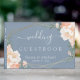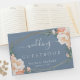Elegante Blumenpfirsichcreme Gold Dusty Blue Weddi Gästebuch