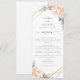Elegante Blumenpfirsichcreme Gold Hochzeitsempfang Menükarte