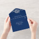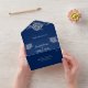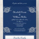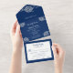 Elegante Blumenzange auf Blue Wedding All In One Einladung