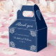 Elegante Blumenzange auf Blue Wedding Geschenkschachtel