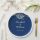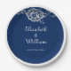 Elegante Blumenzange auf Blue Wedding Pappteller