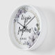 Auf dieser stilvollen Wanduhr befindet sich ein eleganter goldfarbener Lavendel-Blumenkranz, in dem Sie romantische Eleganz kreieren können. Teil der trendigen Geschenksammlung für Hochzeitsgäste