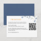 Elegante florale Blue Wedding Details Enclosure Card, die Ihre Hochzeitseinladungen perfekt ergänzt. Mit einem zarten Blumenmotiv in einer beruhigenden blauen Farbpalette verleiht diese Gehäusekarte Ihrem Hochzeitsgeschenk eine Touch von Eleganz. Diese Karte eignet sich hervorragend, um wichtige Informationen über Ihren besonderen Tag zu übermitteln, wie z.B. Veranstaltungsdetails, Empfang-Termine und Unterkunftsmöglichkeiten. Sein elegantes Design verbessert nicht nur die Gesamtästhetik Ihrer Einladungen, sondern sorgt auch für Klarheit für Ihre Gäste und sorgt so für eine gute Kenntnis und Spannung für Ihre Feier. Passen Sie es mit Ihren eigenen Daten an. Für weitere Anpassungen (Hintergrundfarbe, Schriftart und Farbe) klicken Sie bitte auf den Link "Personalisieren" und verwenden Sie unser Designwerkzeug, um diese Vorlage zu ändern.