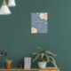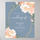 Hier ist eine atemberaubende Möglichkeit, Ihre Gäste zu Ihrer Hochzeitsfeier zu begrüßen. Dieses Design besticht durch elegante Pfannkugeln und Rose in den Farbtönen von Pfirsich und Creme, die in den Imitaten Goldfolie umrissen sind, sowie durch trendige Eukalyptus-Blätter. Ihre leicht personalisierten Hochzeitsdetails werden von einem geometrischen Rahmen aus vergoldeten Imitaten umrahmt, auf einem eleganten, staubblauen Hintergrund. Wenn Sie eine Frage zum Design haben oder dieses Design auf einem anderen Produkt sehen möchten, schreiben Sie mir bitte auf Zazzle. Genießen Sie Ihren besonderen Tag! Design © Judith Schmidt.
