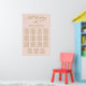 Das elegante Goldkalligraphie-Skript für Hochzeitssitzplakatdesign bietet ein Monogramm der Braut- und Bräutigamen, das Hochzeitsdatum und den individuellen Vorlagentext für Tischnummern und Gästebamen. Die Farben sind rot-rosa und antikes Gold.