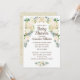 Unsere Blush Pink Babydusche Die Einladung umgibt Ihre Details mit einem Gemälde aus Aquarellgrün, botanischem Blattwerk, weißer Rose und Blume aus Peak auf weißem Hintergrund.