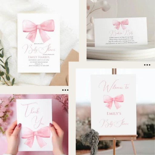 Elegant Blush Pink Pastel Bow Girl Baby ShowerDesignt von Zakreva Olha