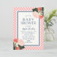 Elegante Blumendusche mit blauen Rose, dunklen Korallen- und Gelbblumen und grünen Blätter mit weißer Mitte und blauen Rahmen vor einem sanften, schwarzen Korallengrungel. Die Einladung hat eine blaue Rückseite. Es ist eine perfekte Einladung für eine Mädchen- oder geschlechtsneutrale Babydusche. Karo mit Babydusche hier https://www.zazzle.com/rosewoodandcitrus/gifts?cg=196748758771183969?rf=238364477188679314 Personalisieren Sie diese Einladung mit Ihren Daten, indem Sie den Platzhalter-Text ersetzen. Für weitere Optionen, wie zum Beispiel den Schriftart, die Textgröße/Schriftfarbe, den Abstand zwischen den Buchstaben zu ändern oder um den gebogenen Text zu kontrahieren oder zu erweitern, klicken Sie auf die Schaltfläche "Anpassen". *Bitte beachten Sie, dass das Zazzle-Wasserzeichen, das in der Zoomvorschau angezeigt wird, NICHT auf dem gedruckten Endprodukt erscheint. © Rosewood and Citrus