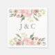 Ein elegantes Blumenstrauß mit blauen, rosafarbenen Eichenbäumen und Elfenbeinbäumen umrahmt diese herrlichen, monogramm-Frühlingsservietten. Die botanischen Blätter der Salbei-grünen Eukalyptus schmücken den Rand, der das schöne kursive Drehbuch umgibt. Eine schöne personalisierte Ergänzung zu einem Empfang für Hochzeiten im Garten im Sommer. Diese Kollektion ist weich und zart mit romantischer Typografie.
