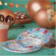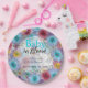 Herzlich willkommen in der Welt mit unseren charmanten Baby in Bloom Baby Shower Tellern. Diese reizvollen Teller sind mit einem skurrilen Blumendesign geschmückt, das die Essenz eines blühenden Gartens einfängt und das neue Leben, das bald blühen wird, feiert. Die lebhafte Auswahl an Blume in Rosa, Blau, lila und Gelb schafft einen faszinierenden Hintergrund für den individuell gestaltbaren Text, der sich im Herzen des Tellers befindet. Der grafische Stil ist eine Mischung aus Eleganz und Verspieltheit, mit detaillierten Illustrationen, die die Freude und das Wunder der neuen Anfänge wecken. Der zentrale Text "Baby in Bloom", zusammen mit dem Platzhalter für den Namen der Mutter und das Veranstaltungsdatum, kann personalisiert sein, um Ihre Babydusche wirklich einzigartig zu machen.