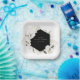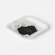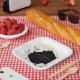 Elegante Bohemische Teller aus Blumenpapier. Weiße Aquarellfarben und zartes grünes Blattwerk, schwarzer geometrischer Rahmen.