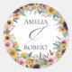 Eleganter Boho Sonnenblume Rustikale Hochzeit im Herbst Klassischer Rundsticker mit einer schönen Aquarell mit weinroten Rose, Sonnenblumen, Wildblumen und Grünpflanzen. Ideal für eine Herbstssommer-Hochzeit. Diese Einladung ist schön für eine Hochzeit auf dem Lande oder eine Gartenhochzeit