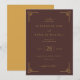 Diese elegante Hochzeitseinladung zeigt einen tief-marroten Hintergrund mit goldenen geometrischen Rändern, wodurch eine fortschrittliche und formelle Ästhetik entsteht. Das Design umfasst eine Mischung aus Serif-, Sans-Serif- und Skript-Schriftarten in Gold, was die Lesbarkeit und visuelle Attraktivität erhöht und gleichzeitig eine festliche Atmosphäre beibehält. Anpassbare Textfelder ermöglichen eine Personalisierung, wodurch sie perfekt für Paare ist, die ihrem besonderen Tag ihre eigene Note verleihen möchten. Die allgemeine Stimmung ist eine von Eleganz und Raffinesse, ideal für eine unvergessliche Hochzeitszeremonie.