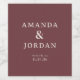 Dieses elegante Weinlabel für Hochzeiten verfügt über ein einfaches, anspruchsvolles Design mit einem reichhaltigen, bordeauxroten Hintergrund und sauberem, weißem Text. Das Layout ist minimalistisch mit viel negativem Raum, der die moderne Serifenschrift hervorhebt und eine ausgewogene und formelle Ästhetik schafft. Perfekt für die Feier besonderer Momente vermittelt dieses Label Eleganz und Schlichtheit und ist daher ideal für Hochzeiten oder bedeutende Ereignisse. Anpassbare Elemente ermöglichen es Ihnen, die Labels mit Namen und Daten zu personalisieren, sodass sie Ihre einzigartige Feier widerspiegeln.