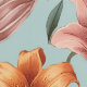 Tapete mit Blütenmuster aus Lilien mit aquamarinem Hintergrund abziehen und kleben.