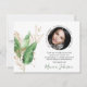 Senden Sie Freunden und Familie, die Sie während Ihrer Trauerzeit unterstützt haben, eine Dankeschön-Karte, die auch ein wertvoller Sake sein kann. Mit botanischem tropischem Blattwerk mit goldenen Akzenten, einem Kreisfoto Ihres Lieben gerahmt mit dem Text "IN LIEBING MEMORY - FOREVER IN UNSEREM HERZEN - UND EIN DATUM", einer Danksagung und ihrem Namen in eleganter Kalligraphie-Schrift. Vorlage ist leicht zu personalisieren.