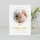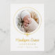 Mit unserem eleganten Gold Foil Bow Foto Birth Announcement feiern Sie Ihre kleine Ankunft atemberaubend. Das Foto des Babys ist schön umrahmt von einem vergoldeten Folienband, das in einem Bogen auf einem knusprigen weißen Hintergrund befestigt ist. Der Vor- und Vorname Ihres Babys erscheint in eleganter Kalligrafie, mit dem Nachnamen und den Geburtsdaten unten. Die Rückseite der Ankündigung bietet Platz für ein zusätzliches Foto und eine persönliche Nachricht. Dieser luxuriöse, individuell gestaltbare Sake ist perfekt, um Ihre Freude mit Familie und Freunden zu teilen!