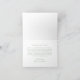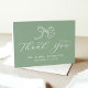 Mit dieser stilvollen Dankeschön-Karte, die einen handgezeichnet weißen Bogen und "Danke" in eleganter weißer Kalligraphie vor einem weichen, grünen Hintergrund zeigt, bedanken Sie sich. Passen Sie die Vorderseite mit Ihren Namen und Hochzeitsdatum an, um ein dauerhaftes Memento Ihrer Feier zu erhalten. Die Innenseite dieser gefalteten Karte bietet Platz für Ihre persönliche Note, sodass Sie den Lieben für ihre Liebe, Unterstützung und nachdenkliche Geschenke danken können. Mit seiner eleganten, grünen und weißen Palette ergänzt dieses Design wunderbar die botanischen, rustikalen und zeitgenössischen Hochzeitsstipenzersammlungen.