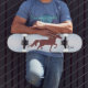 Elegante braune Silhouette und Kalligraphie auf hellblauem Gradientenrost Skateboard. Text kann personalisiert sein.