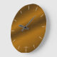 Diese elegante, individuell anpassbare Uhr zeichnet sich durch ein Hintergrunddesign aus, das den Look des gebürsteten Metalls in einem reichen Schatten der Bronze wiedergibt. Die Stunden sind mit hellen Linien markiert, aber keine Zahlen für einen eleganten, minimalen Look. Fügen Sie Ihre eigenen Bilder oder Texte für eine benutzerdefinierte Uhr hinzu, oder verlass es einfach so, wie es ist, für eine perfekte goldene Uhr, die eine Vielzahl von Dekorationen.