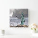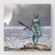 Fesselnde Küstenlandschaftskunst mit eleganter Bronzestatue, einer Meerjungfrau, die als Selkie Sealwoman bekannt ist, an einem felsigen Ufer mit scheußlichen Klippen