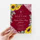 Elegante Burgund Sonnenblumen Girl Taufe Einladung