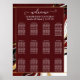 Begrüßen Sie Ihre Gäste stilecht an ihren Plätzen mit diesem großformatigen Sitzplan. Passend zur burgunderroten Marmorsammlung enthält dieses Poster ein auffälliges "Welcome" in weißer Schreibschrift vor einem tiefroten Zentrum, flankiert von luxuriösen goldgesprenkelten Marmor-Rahmen. Es ist ein funktionales Dekorationselement, das Ihr gesamtes Rezeptionsthema zusammenhält. Es bietet einen organisierten 12-Tisch-Layout mit klaren Überschriften für die Gastnamen. Kann mit den Namen des Paares und dem Hochzeitsdatum oben angepasst werden.