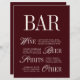 Elegante Burgundy Bar Menu Drinks Wedding Tabletop