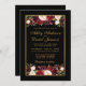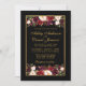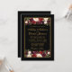 Elegante Watercolor Burgundy Blütenschwarz und Gold Einladungs-Karte für Hochzeiten mit Gold Rahmen.