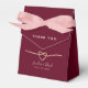 Einfache, elegante, minimalistische, moderne roter Bordeaux-Gastgeschenk Hochzeit mit Braut- und Bräutigam-Namen, Dattel- und Goldseilherz.