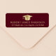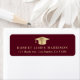Eleganter bordeauxroter Abschluss Rücksendetikett mit Goldgrad-Kappe und Name und Anschrift des Absolventen in hellgoldfarbener moderner Typografie.