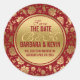 Elegante Burgundy & Gold Floral Damasks Runder Aufkleber