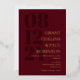 Elegante typografische Hochzeitseinladung in bordeauxrot mit Ihrem Hochzeitstag in großer Zahl auf der Seite der Einladung. Fügen Sie Namen und Hochzeitsworte in Goldfolie hinzu. Goldfolie und dunkelrote Hochzeitseinladung mit Ihren Namen in einem großen Schriftart.