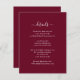 Gönnen Sie Ihrem Gast weitere Informationen mit diesen eleganten bordeauxroten Stilkarten. Einfach online personalisieren. Passende Artikel zur Ergänzung dieser minimalistisch burgundischen Hochzeitszittel Karten zur Verfügung.